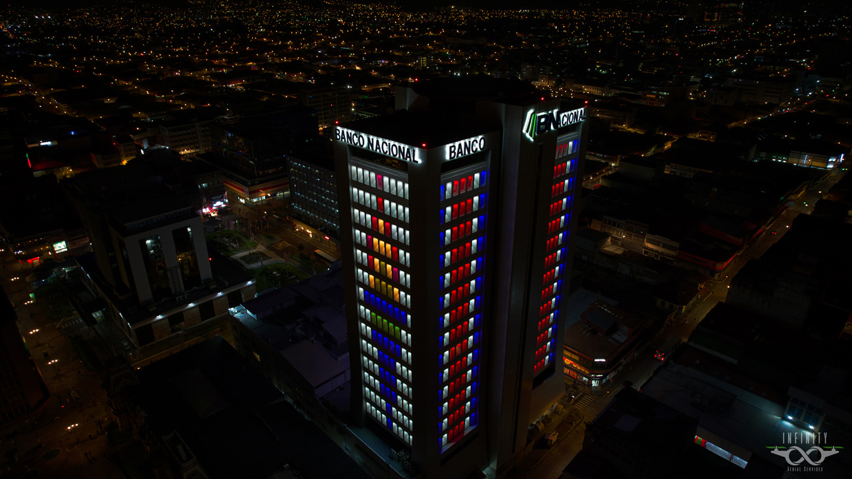 Con el fin de conmemorar el 15 de setiembre, fecha de celebración del Día de la Independencia de Costa Rica, durante todo este mes patrio el Banco Nacional iluminará su edificio principal con los colores blanco, azul y rojo, en conjunto con la representación del símbolo nacional de la Antorcha de la Independencia, que hoy atraviesa el país en señal de libertad.