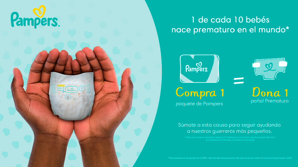 Esta colaboración aplica para compras realizadas en Walmart Costa Rica, Guatemala, El Salvador y Honduras desde el 21 de febrero hasta el 2 de abril de 2024. El objetivo de esta acción es abordar los desafíos únicos de estos bebés, principalmente debido a su piel más sensible y su desarrollo aún en proceso, donde utilizar productos cuidadosamente diseñados teniendo en cuenta estas necesidades específicas puede ser crucial para su comodidad y desarrollo saludable, con beneficios como asegurar hasta 6 horas de absorción para un sueño ininterrumpido.