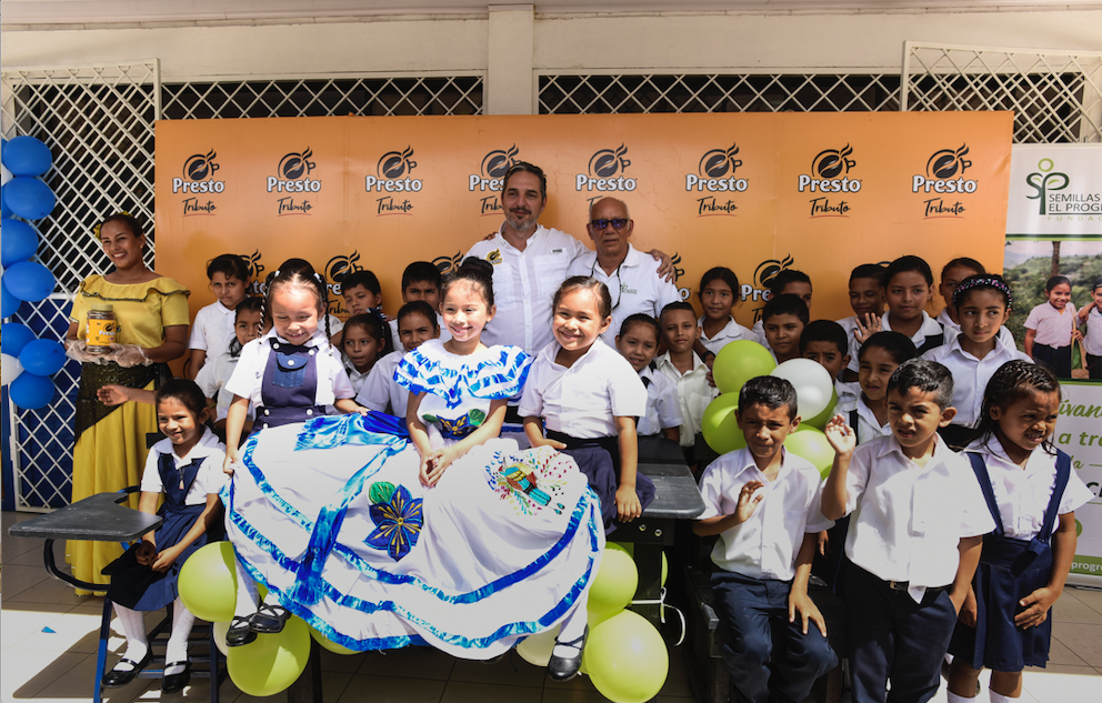 Café Presto de Nestlé con su campaña Tributo Nica, reconoce el esfuerzo y dedicación de cada uno de sus consumidores nicaragüenses y aporta su granito de arena para una Nicaragua mejor, a través de la donación de 170 pupitres, 10 escritorios y 10 sillas fabricadas a partir de plástico reciclado al Centro Educativo Diriangén en Nueva Guinea.