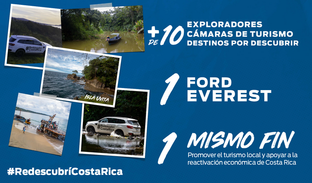 La iniciativa consistió en poner a disposición de ocho micro influenciadores un Ford Everest para que recorrieran Costa Rica y, a través de su contenido, generar interés a sus seguidores, de forma tal que estos visiten distintas rutas en esta época de pandemia.