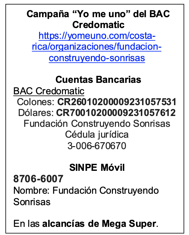 Las empresas interesadas pueden escribir al WhatsApp 8706-6007 o a margie@construyendosonrisascr.com