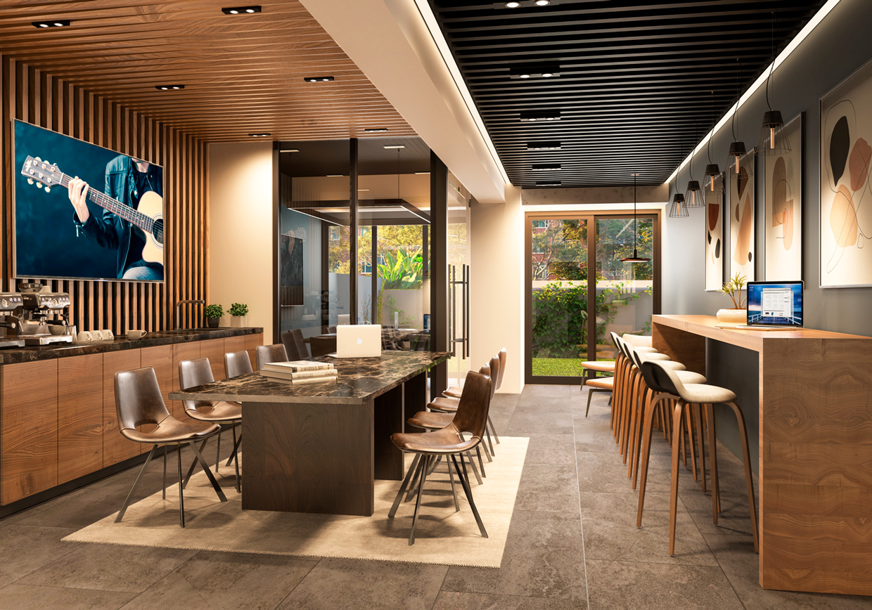 Por otro lado, sus amenidades buscan cumplir con todas las necesidades de quién residirá en él edificio. De esa forma, dará la oportunidad de trabajar, relajarse, convivir, ejercitarse y divertirse en la misma locación. Entre las amenidades que ofrece están: Coffe station, coworking space, business center, gimnasio, piscina, sun deck, firepit rooftop y BBQ terrace.