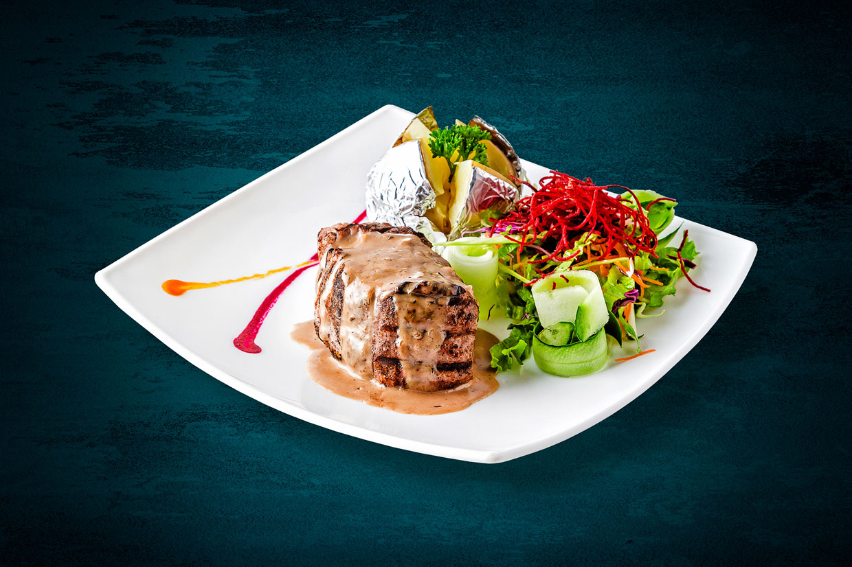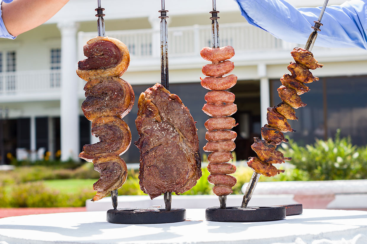 Además, incluye welcome drink, una entrada fría y una caliente con tres opciones cada una a seleccionar, 10 cortes de carne de consumo ilimitado, y un menú especial de guarniciones.