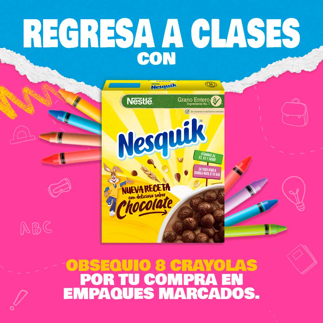 Por la compra de cereales Nesquik o Trix, los consumidores serán premiados con una caja de crayones, con el fin de incentivar la creatividad de sus hijos y completar así un mágico regreso a clases.