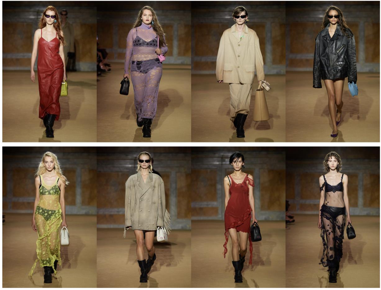 Como una evolución de la interpretación juvenil del tradicional lenguaje americano de Coach, la colección Spring 2024 presenta siluetas a medida en materiales tradicionales de la marca, re-imaginados con la actitud juvenil de la contracultura y la belleza “desgastada” de piezas vintage únicas. La colección presenta artículos de cuero, chaquetas y blazers de gamuza con flecos, así como prendas básicas de algodón y mezclilla regenerativas, desgastadas a mano con técnicas artesanales para crear variaciones en textura y color, un detalle que celebra la belleza de las piezas usadas que se vuelven más valiosas en cuanto más se usan y desafía las nociones de lujo que ponen énfasis en la perfección.