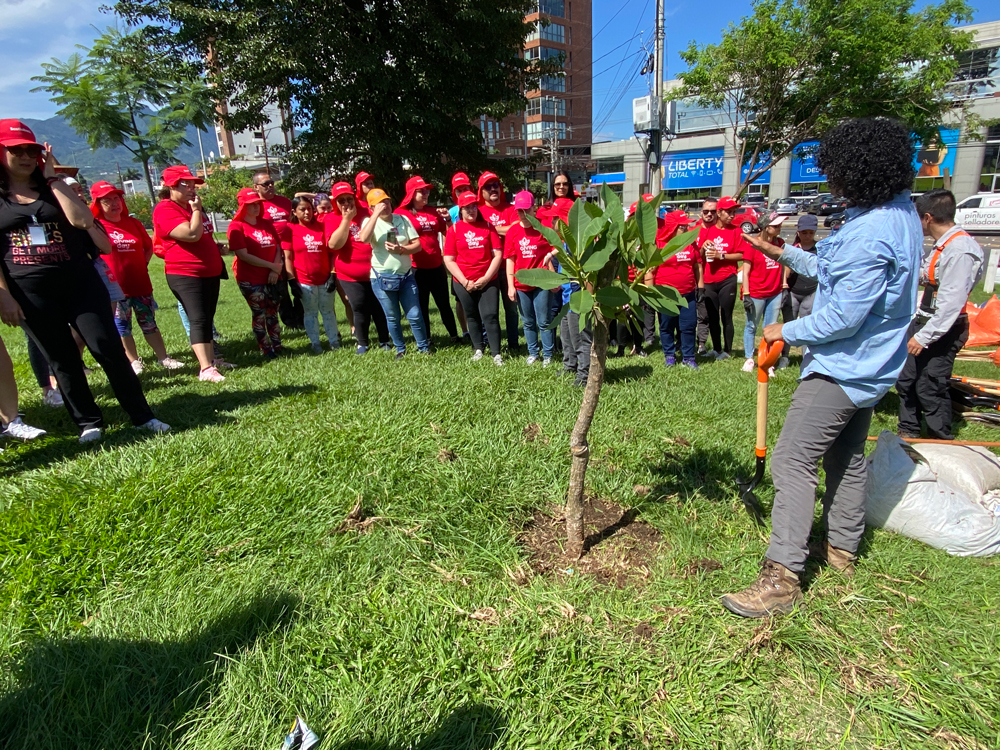 Durante el Scotiabank Giving Day, los voluntarios aplicaron abono químico, colocaron el acolchado de madera y emplearon enmiendas biológicas como hongos benéficos Trichoderma y aminoácidos para el suelo y los árboles, bajo la supervisión de tres ingenieros forestales y arboristas de la empresa costarricense GEA, especializada en gestión, evaluación ambiental y arboricultura, quienes, además, lideraron el manejo de las diferentes especies.