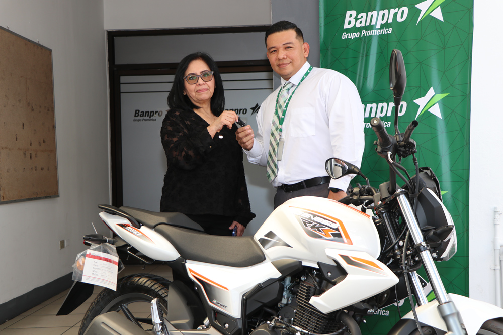 Salvador Figueroa y Martha Talavera recibieron una motocicleta marca Genesis RKS 150, por su destacada labor en Banpro Grupo Promerica durante todo el 2024.