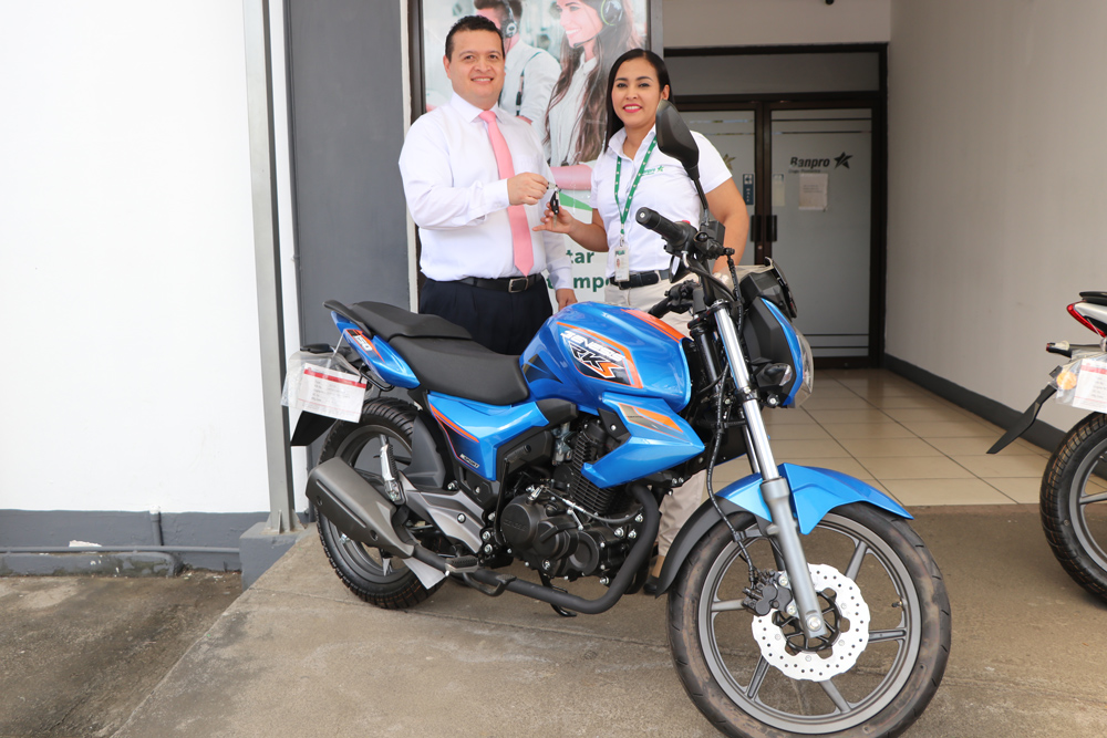 Los colaboradores Salvador Figueroa, supervisor de cobranza y Martha Talavera, técnico en recuperación de la vicegerencia de recuperaciones de Banpro Grupo Promerica recibieron una motocicleta marca Genesis RKS 150, por su destacada labor durante todo el 2024, quienes cumplieron las metas propuestas, gracias a su destacado trabajo.