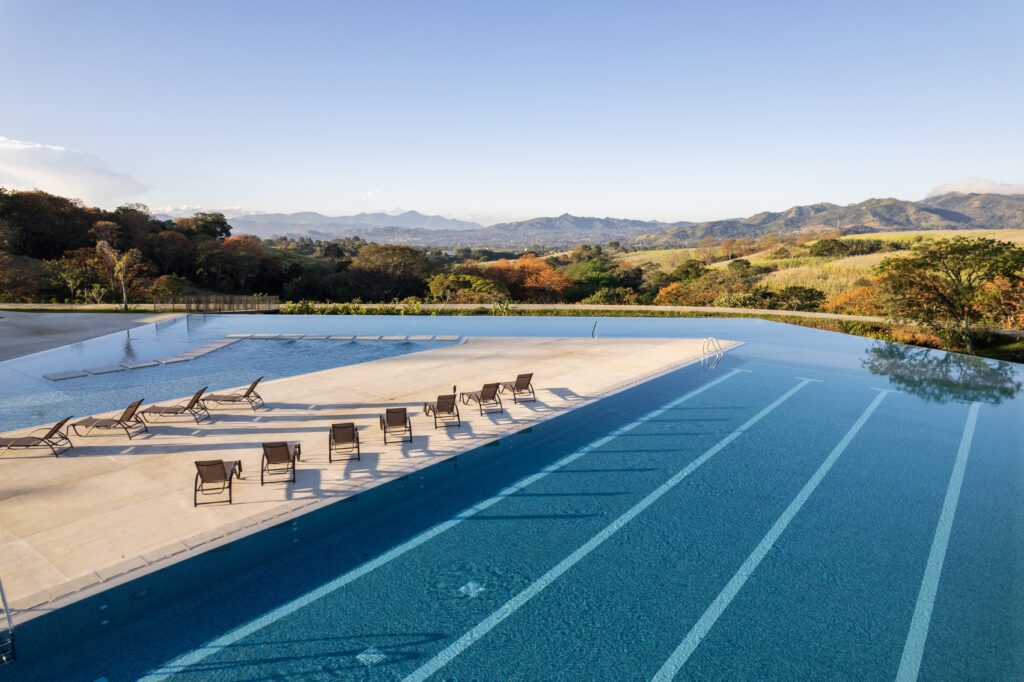Su piscina posee un diseño único que integra tres grandes piscinas – una para natación semi olímpica, una social de más de 40m de longitud, y una para niños – en una sola unidad adaptada a la forma de la montaña, lo que genera un eje infinito rodeado de vistas panorámicas sin comparación en el país.