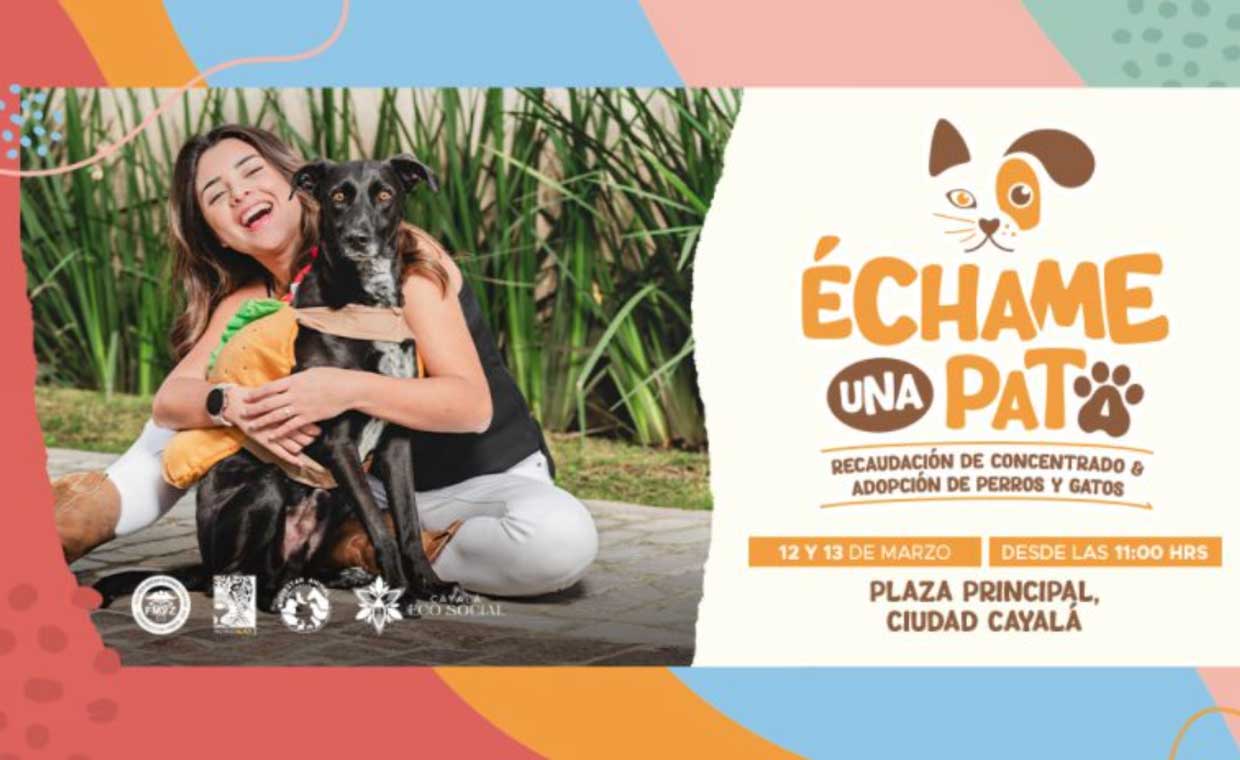 Con el objetivo de contribuir a la importante labor que realizan decenas de organizaciones de rescate de perros y gatos en Guatemala, Ciudad Cayalá organizó el evento Échame una Pata, el cual se llevará a cabo el próximo 12 y 13 de marzo en la Plaza Central y Plaza Carrousel de Ciudad Cayalá.