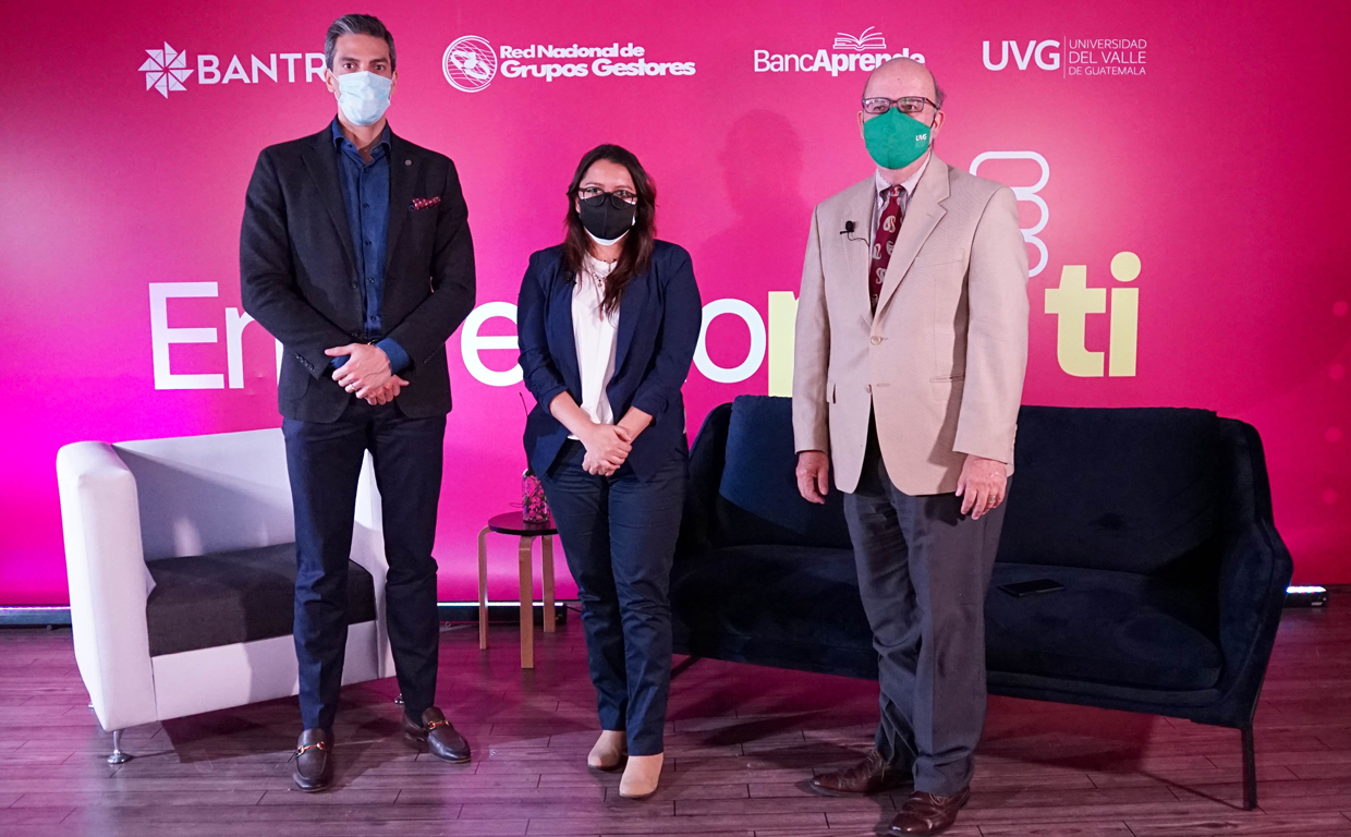 Emprendo por ti se apoya en BancAprende, una plataforma gratuita de educación financiera desarrollado por Bantrab y la Universidad del Valle de Guatemala (UVG), que  lanzó un módulo orientado específicamente a la formación de emprendedores. “Este es el quinto módulo del programa. Los primeros cuatro brindan conocimientos para que las personas gestionen de forma inteligente sus ahorros y gastos, créditos, jubilación y retiro, y seguros. De marzo de 2019 a la fecha, más de 9.800 personas se han inscrito en el programa”, advierte Roberto Moreno, rector de la UVG.