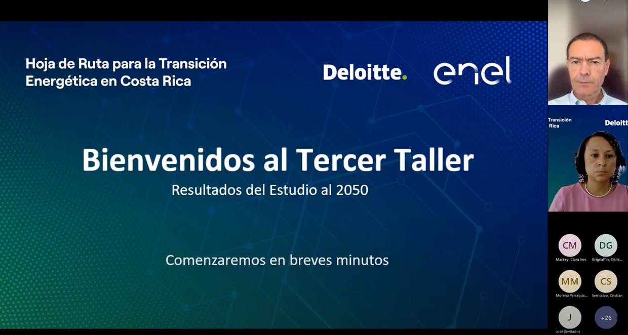 En la búsqueda por impulsar la descarbonización y cumplir con los objetivos pactados por el país para el 2050, Enel en alianza con la firma de consultores Deloitte, presentó los resultados del estudio Hoja de Ruta para la Transición Energética en Costa Rica con visión a 2050. Este estudio se desarrolló en una serie de 3 talleres en los que participaron activamente diferentes organizaciones del sector público y privado.