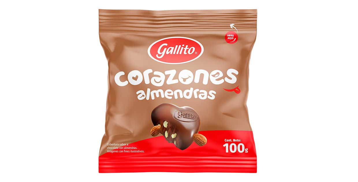 La emblemática línea de corazones de chocolate no puede quedarse atrás en este dulce mes por lo que Gallito innovó también con Corazón Almendras, una deliciosa mezcla de chocolate relleno de apetitosas almendras.
