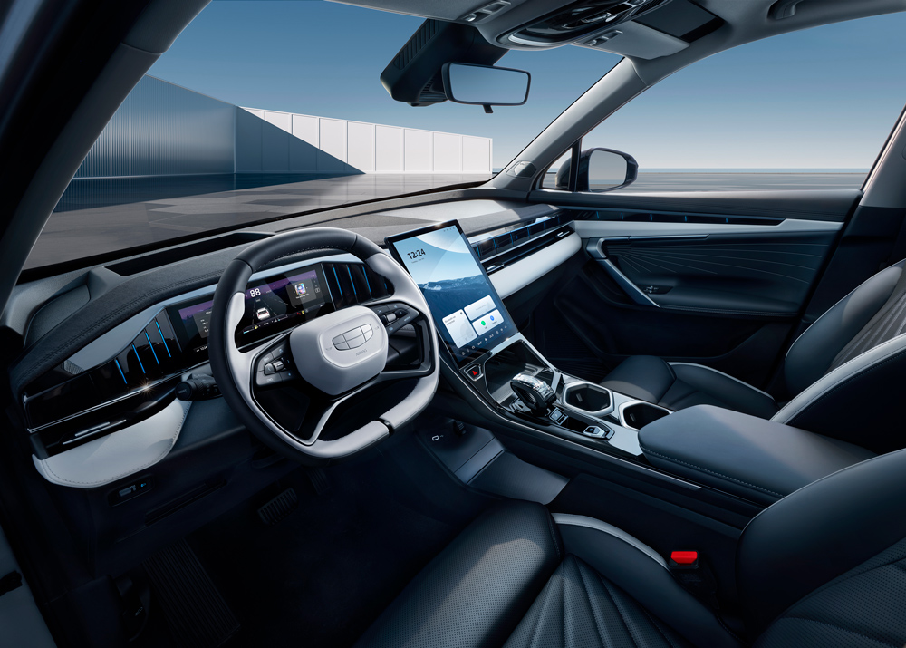 Las luces de ambientación con sincronización musical se convierten en un detalle muy sensorial que refuerza aún más el nivel de lujo del Geely Starray, que ofrece además el “Head up display” con proyección de cluster en el parabrisas.