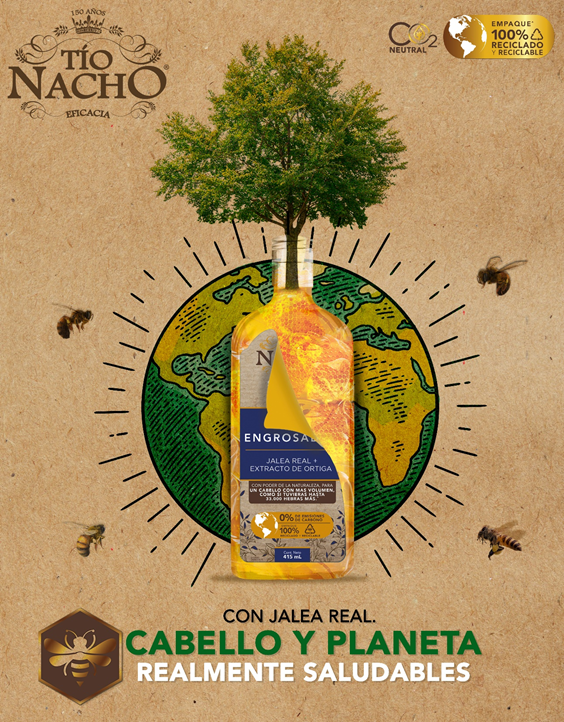 Con una renovada fisonomía del icónico champú con más de 100 años de historia, Tío Nacho se convierte en un referente de sustentabilidad en la industria del cuidado personal y el desarrollo de una economía circular, además de ser un producto neutro en su huella de carbono a través de la adquisición de certificados de carbono, llamados Reducciones Certificadas de Emisiones.