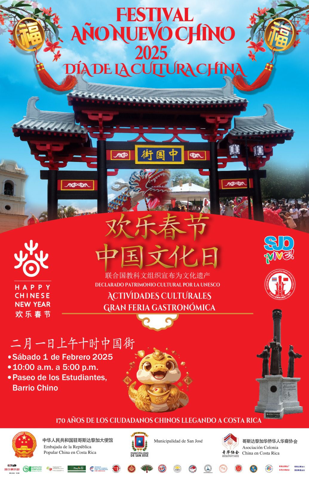 El próximo 1 de febrero, el Barrio Chino de San José se vestirá de gala para dar la bienvenida al Año Nuevo Chino 2025, con una vibrante agenda de actividades culturales gratuitas abiertas al público. Desde las 10:00 a.m. hasta las 5:00 p.m., la comunidad china en Costa Rica, en colaboración con las autoridades nacionales, invita a toda la población a participar en una jornada especial llena de tradición, música, danza y gastronomía.
