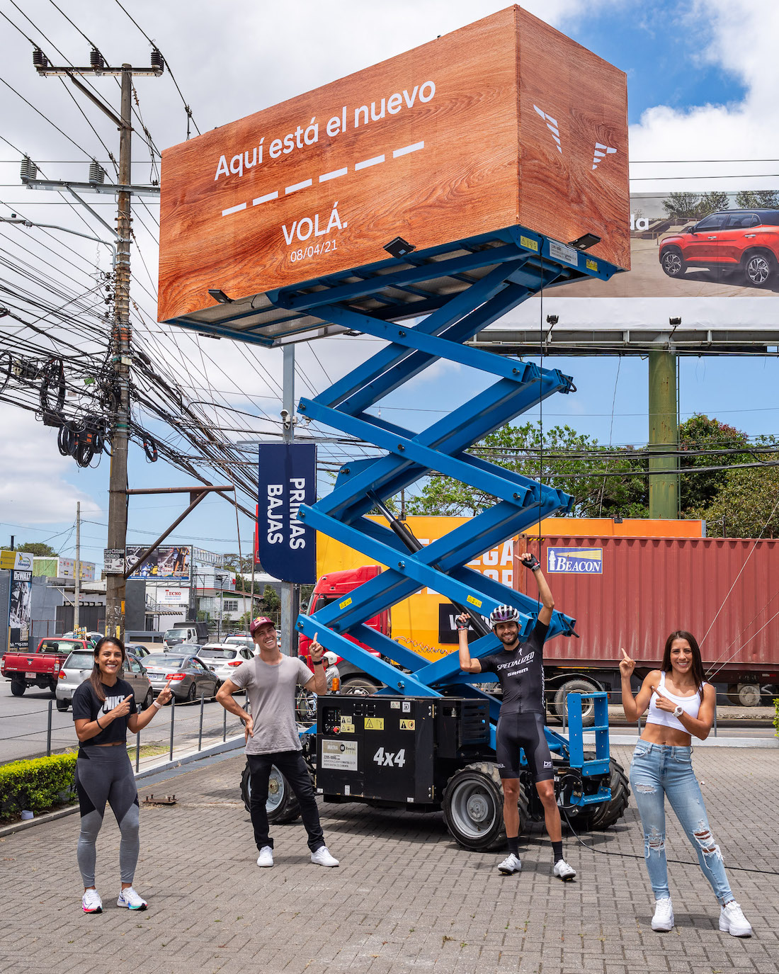 Frente a una enorme caja colocada en las afueras de la sucursal de La Uruca ellos invitaron a sus seguidores en redes sociales a que traten de descifrar el misterio a su lado.