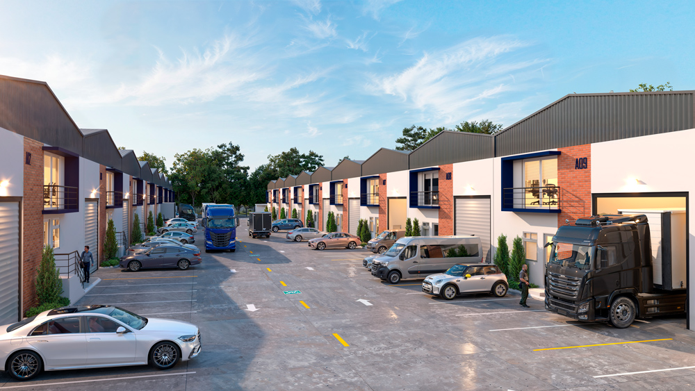El condominio industrial se destaca por integrar un diseño moderno que cumple con los más altos estándares de calidad estructural y eficiencia logística. Las bodegas, con tamaños que van desde 535 m² hasta 1200 m², están diseñadas para satisfacer las necesidades de almacenamiento y operación de las empresas más exigentes. El proyecto cuenta con bodegas con anden y bodegas sin anden, según necesidades logísticas de cada cliente, laminas traslucidas que permiten iluminación natural y balcones que permiten ventilación eficiente. Cada unidad cuenta con: