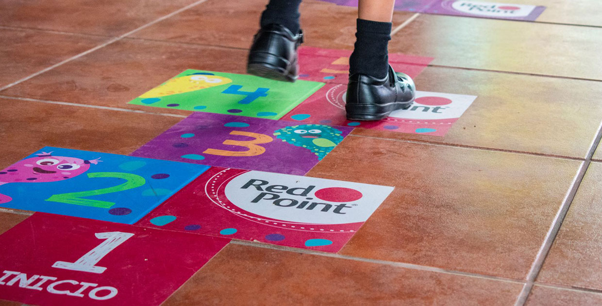 Fomentar la actividad física en los niños de preescolar, contribuir a que desarrollen su motora gruesa, así como el sentido de colaboración y camaradería, son los principales objetivos del camino de estimulación sensorial (sensory path), diseñado por la empresa Dada Textil S.A., dueña de la marca Red Point.