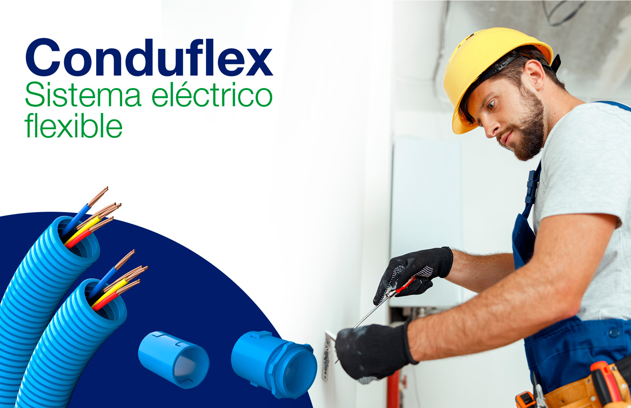 En el marco de proveer soluciones innovadoras y seguras, Amanco Wavin ofrece las tuberías flexibles Conduflex, un sistema de tubos corrugados de PVC flexible que permite alojar y proteger conductores aislados y cableado telefónico. Está garantizado para instalaciones eléctricas y telefónicas en paredes y cielos rasos.