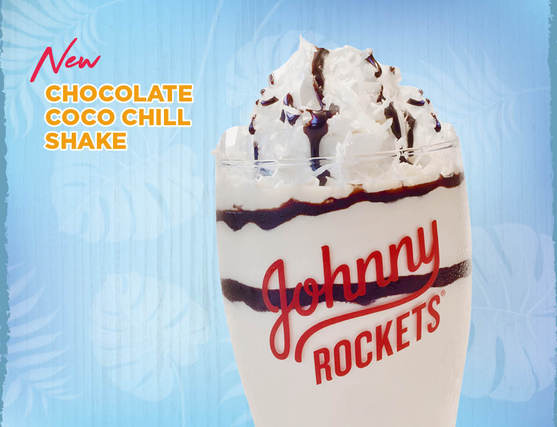Para esta temporada, otro shake se une a la variedad de sabores que ofrece Johnny Rockets. Se trata del Chocolate Coco Chill Shake , una deliciosa mezcla de helado de chocolate, coco y crema batida.