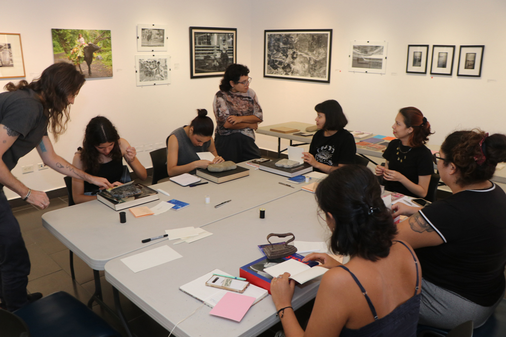 El taller fue impartido por los artistas Tamara Caldera y Gabriel Gutiérrez con el propósito de ofrecer las herramientas necesarias para el proceso de producción de una publicación autogestiva y artesanal.