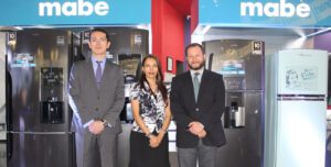 Alessandro Ibarra, gerente de país para Guatemala de Mabe, Patricia González, gerente de categoría de línea blanca en Grupo Distelsa y Martín Prera, director de Mercadeo de Grupo Distelsa.
