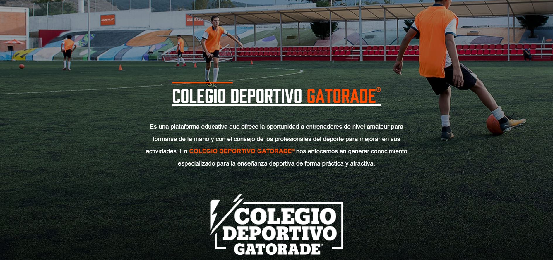 Gatorade sabe que detrás de cada atleta hay una extraordinaria preparación potenciada por un entrenador. Por esto ha desarrollado el Colegio Deportivo, una plataforma online creada específicamente para entrenadores de fútbol, la cual integra 5 diferentes módulos en los que se les proporciona herramientas que podrán ser aplicadas en sus entrenamientos.