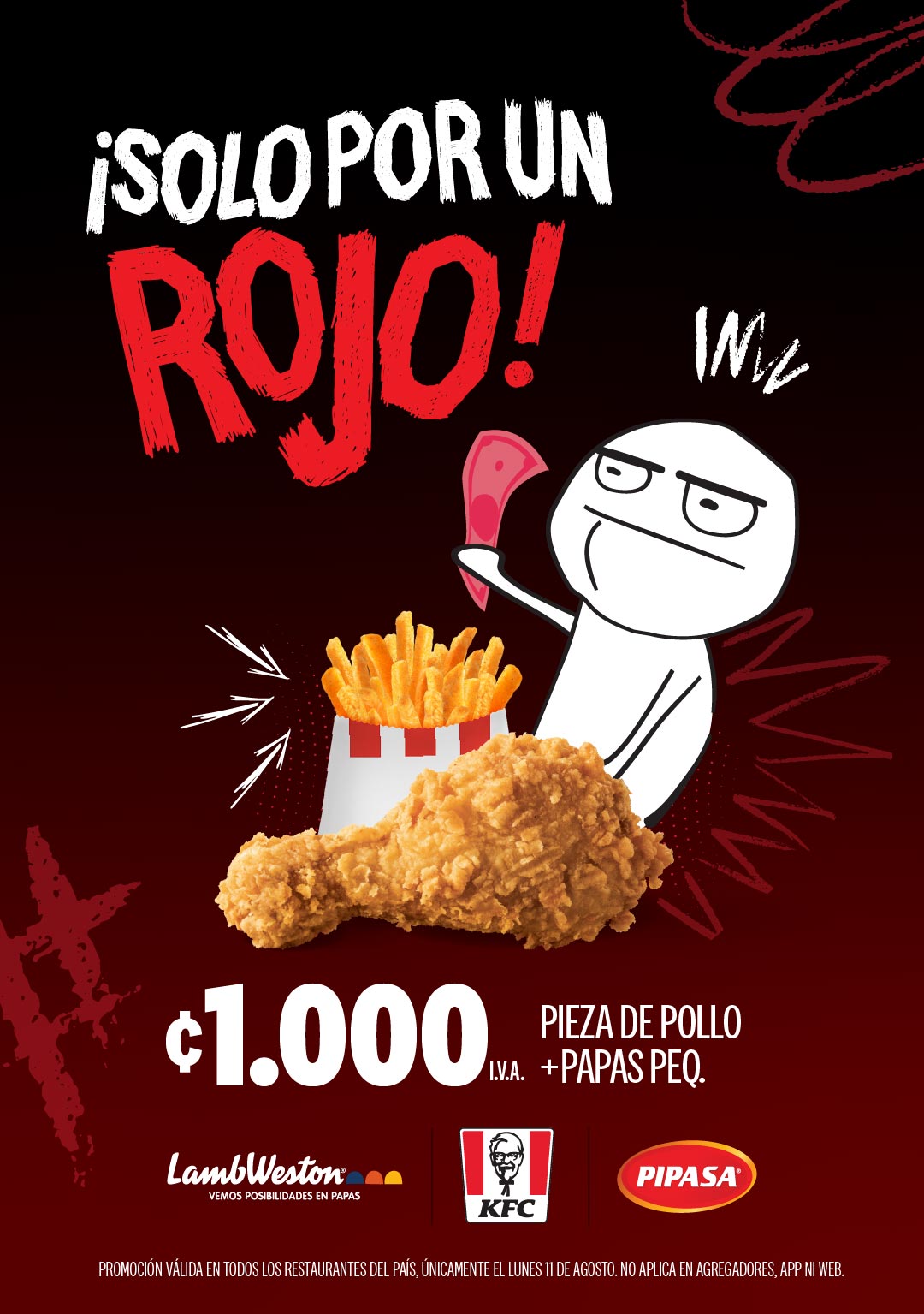 Además, como parte de las iniciativas de KFC Costa Rica para el disfrute de sus clientes, el lunes 11 de agosto ofrecerá una promoción especial para promover el uso de los billetes de ₡1 000 series A y B que serán descontinuados por el BCCR. Ese día, los clientes podrán adquirir una pieza de pollo acompañada de papas individuales por solo “un rojo”, una promoción exclusiva para disfrutar en los 63 restaurantes de KFC del país.