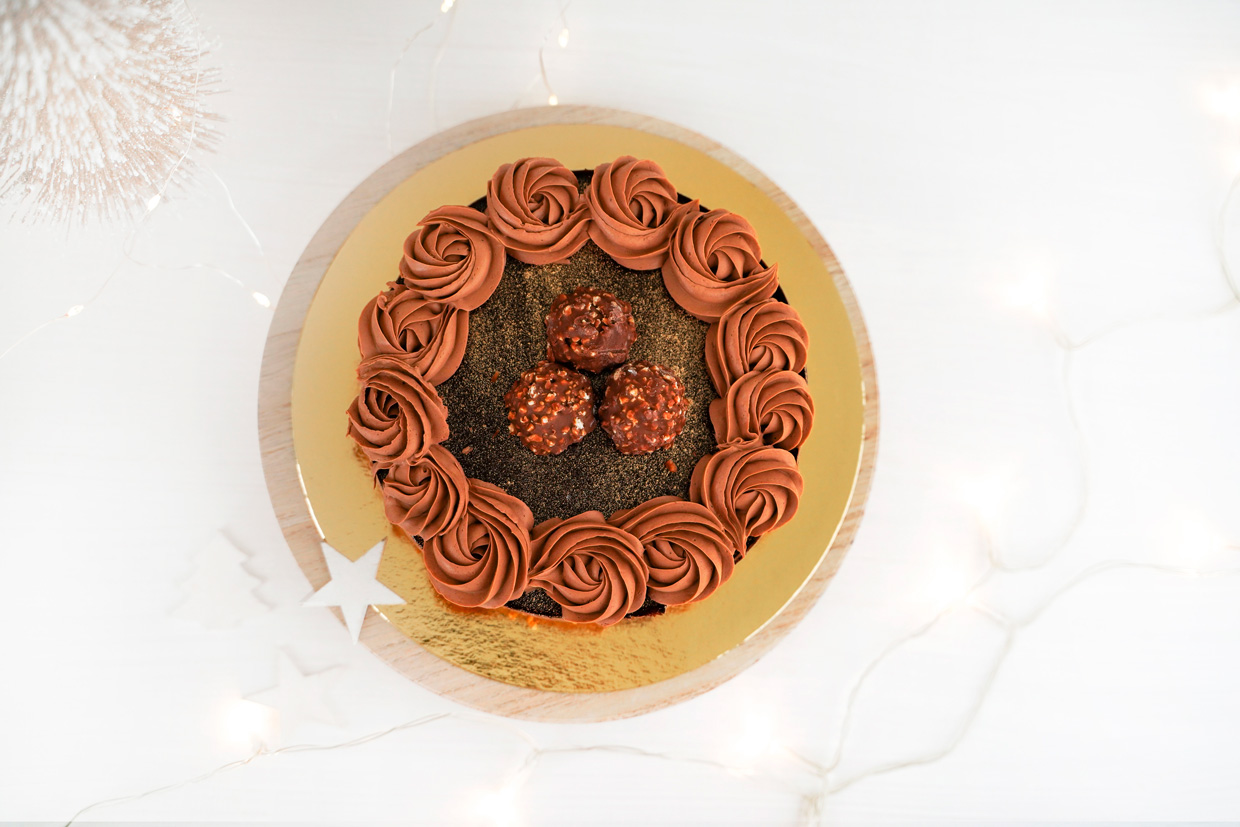 Destaca una fórmula que reúne 40 años de trayectoria de la chocolatería europea, donde trozos de Ferrero Rocher, el más preciado de los chocolates italianos, se combina con un crujiente de galleta, sobre el cual se monta un mousse de crema de avellanas y chocolate, un placer sorprendente que da vida a una exquisita tarta.