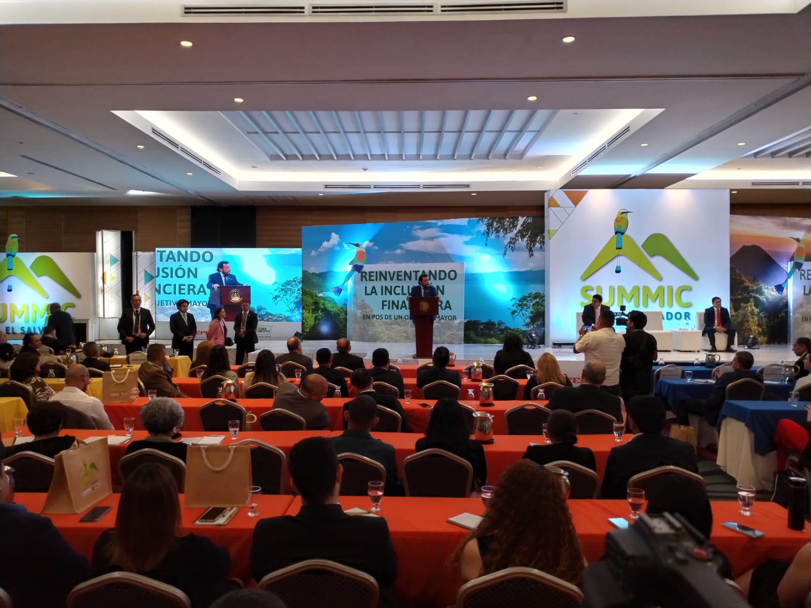 El Vicepresidente de la República Félix Ulloa, acompañado del Presidente y CEO de FEDECRÉDITO, Macario Armando Rosales Rosa y el Presidente de la Federación Peruana de Cajas Municipales de Ahorro y Crédito (FEPCMAC) Jorge Solis Espinoza, inauguraron el SUMMIC El Salvador 2024, un encuentro de tres días en los que se desarrollarán conversatorios, paneles con expertos y ponencias magistrales enfocadas en las microfinanzas.