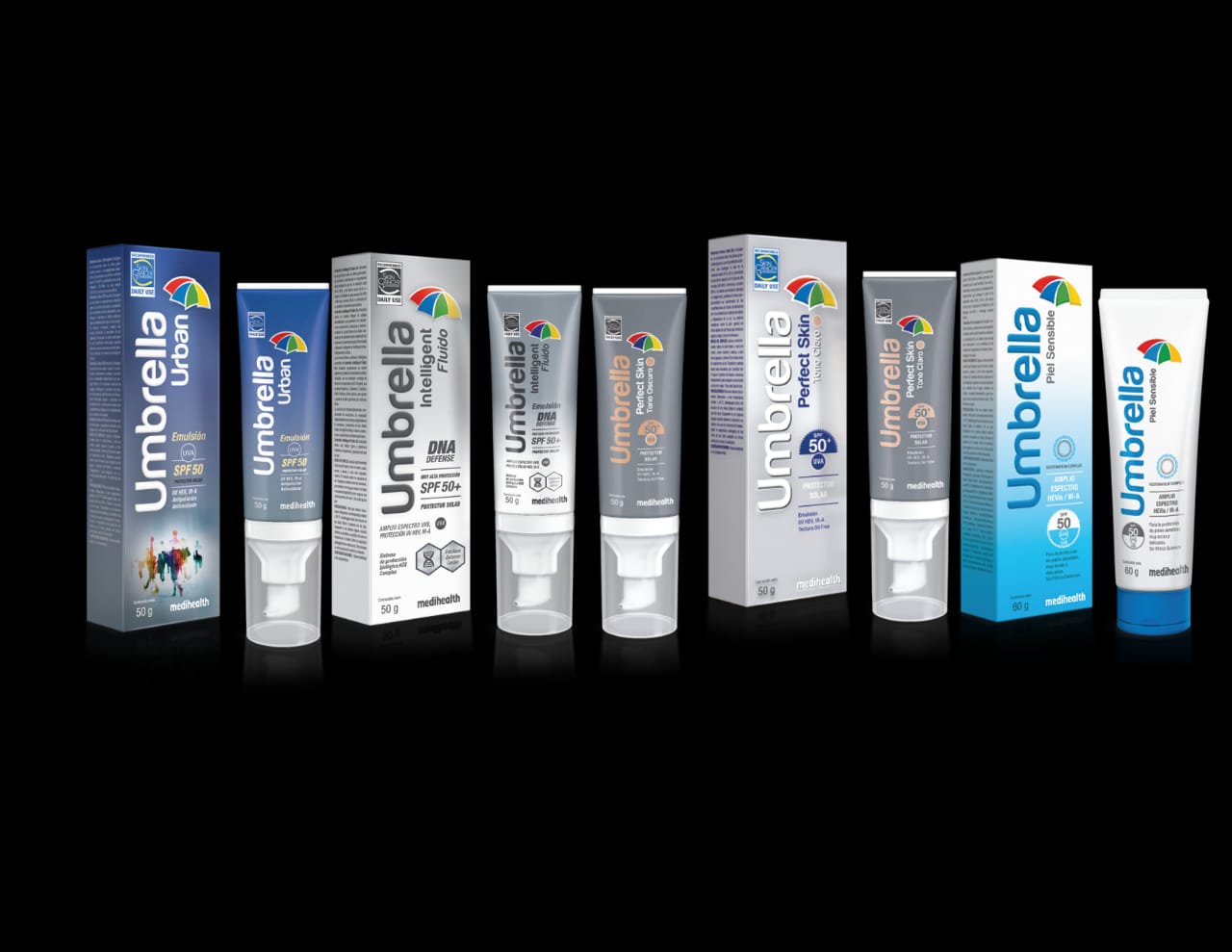 “Umbrella Nueva Generación”, es una completa línea de foto protectores que protege a la piel de los rayos UVA y UVB y luz visible e infrarroja gracias a una tecnología que le permite al usuario contar con un producto sin ningún tipo de residuo o brillo en la piel.