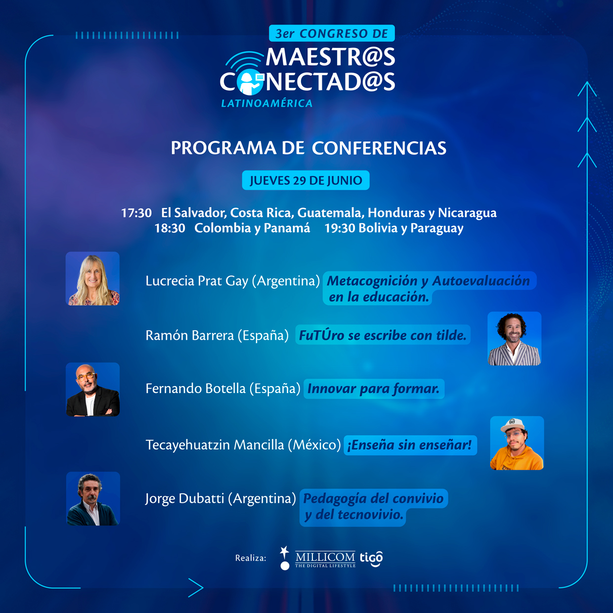 Millicom (Tigo) realiza el Tercer Congreso de Maestr@s Conectad@s, una iniciativa enfocada en potenciar las competencias de aprendizaje y enseñanza digital de los educadores. Algunos de los temas de la agenda del encuentro educativo incluyen: la innovación y creatividad en las aulas; los recursos para transitar entre lo presencial, lo virtual y lo híbrido en la educación; cómo comprender y gestionar la atención fugaz de los alumnos en las aulas.
