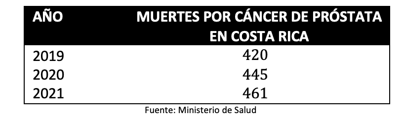 Las provincias con mayor incidencia de casos son: Guanacaste en el primer lugar, seguido por Limón, Heredia y San José. Usualmente, esta enfermedad se diagnostica de forma tardía, en hombres de más de 55 años y con sintomatologías muy acentuadas. Esto hace que los tratamientos sean mucho más invasivos, dolorosos y aumenta la probabilidad de fallecimiento.