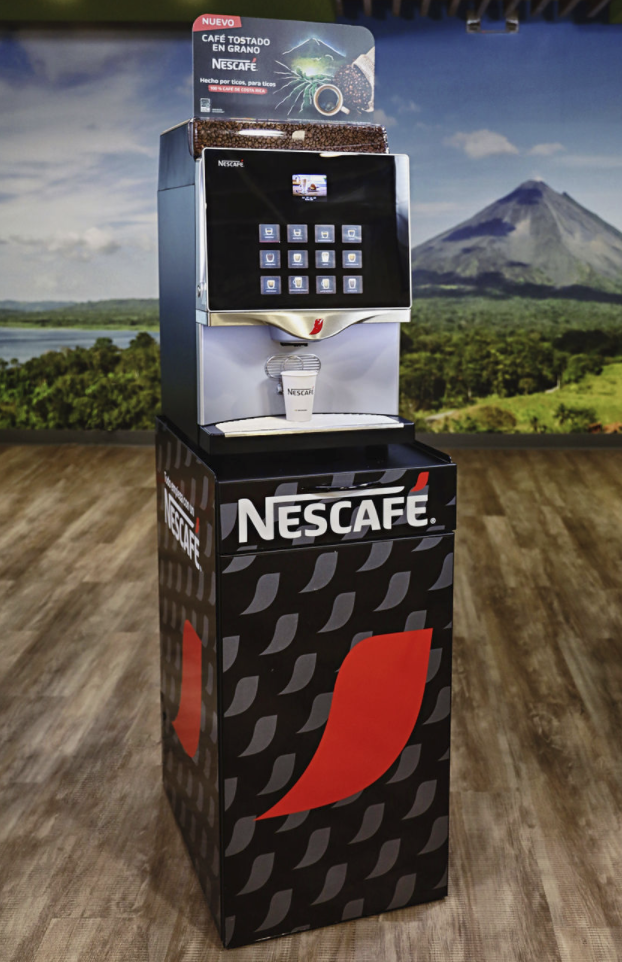 Tras el éxito obtenido con el reciente lanzamiento de Café Molido Nescafé para el segmento retail, Nestlé Costa Rica presenta Café Nescafé Grano Nacional para consumo fuera del hogar. Todos los amantes de un buen café en grano y molido al instante, podrán disfrutar en todas máquinas expendedoras de Nescafé del primer café hecho de granos 100% cultivados y cosechados en las mejores zonas de altura cafetaleras del país máquinas.