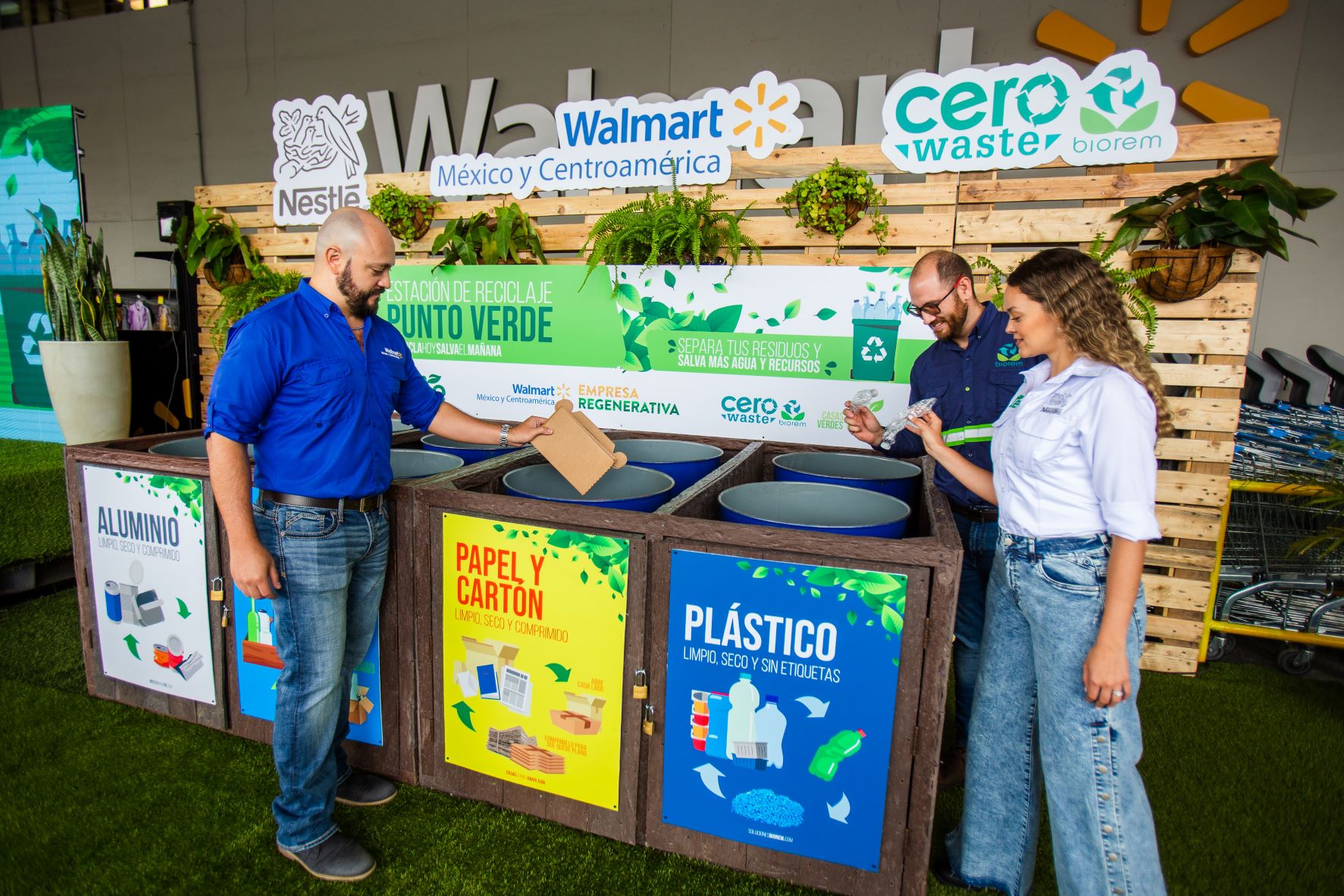 Nestlé, Walmart y Biorem anunciaron la instalación de la primera Estación de Reciclaje Punto Verde, ubicada en Walmart Roosevelt, la cual brindará a los guatemaltecos la oportunidad de depositar y separar los desechos correctamente para poder aplicar la Economía Circular y así revalorizarlos, evitando que sean de un solo uso y contaminen.