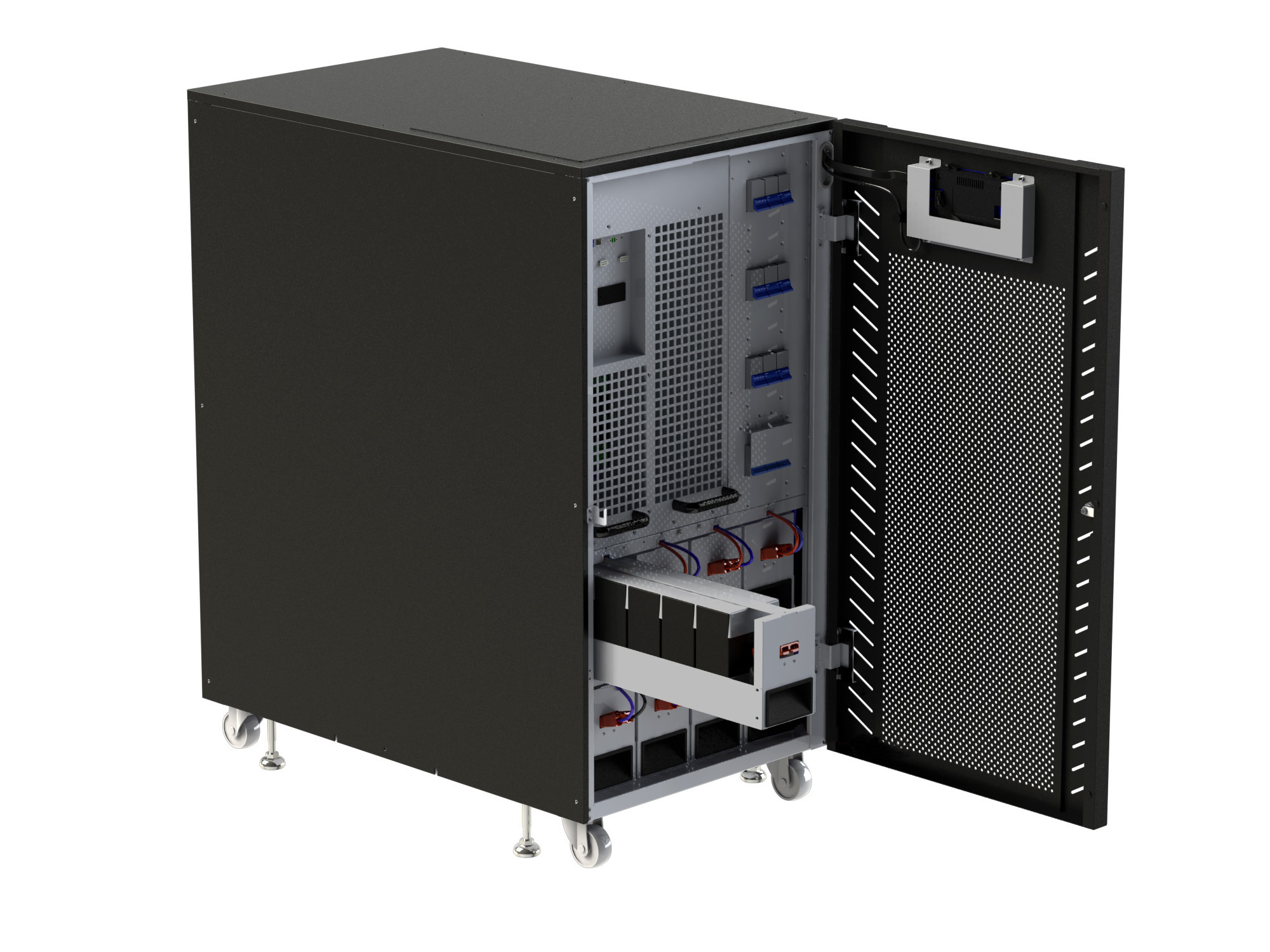 En cuanto al diseño, el UPS viene alojado en un chasis compacto y equipado con componentes modulares internos que permiten el reemplazo rápido, periodos de inactividad cada vez menores a la par con promedios mínimos de Recuperación por Concepto de Servicio (MTTR). Este esquema permite expandirse en entornos de alta densidad o donde el espacio sea limitado.