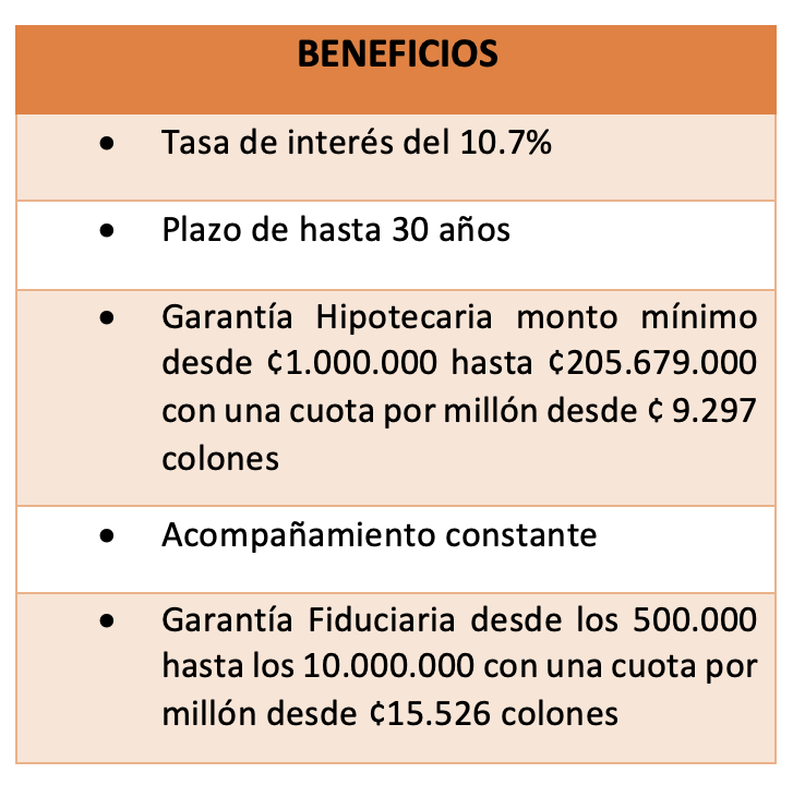 Con el Crédito Empresarial, si las empresas o personas empresarias tienen garantía real, pueden unificar deudas, indistintamente del año que fueron generadas con un plazo mayor y tasas atractivas de 10,7%. La realidad de muchas empresas es que manejan líneas de crédito de capital de trabajo a plazos muy cortos, a altas tasas de interés con diferentes instituciones financieras.