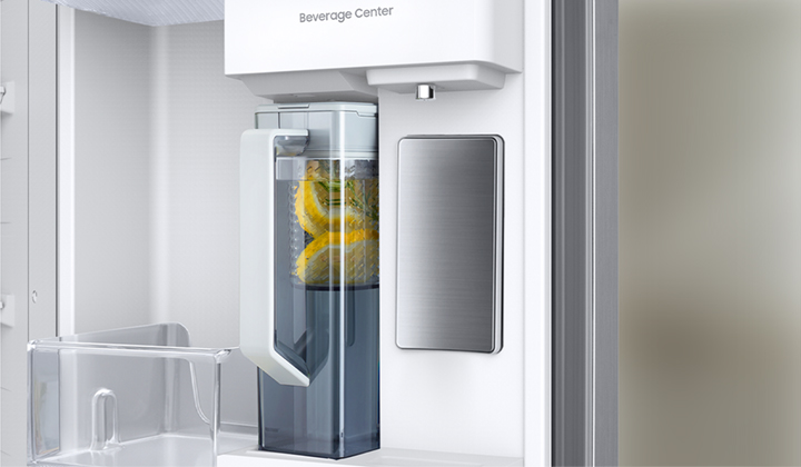 La Bespoke Side by Side de Samsung se conecta a Internet, lo que le permite aprovechar todas sus funcionalidades inteligentes y mejorar su calidad de vida. Con tan solo un toque, su puerta se abrirá automáticamente, brindándole un acceso sin esfuerzo, ideal para cuando regresas del supermercado y tienes las manos llenas de bolsas. Además, cuenta con un Beverage Center que le garantiza agua fresca y helada en cuestión de segundos, ya sea para disfrutar de sus infusiones favoritas, o para mantenerse hidratado.