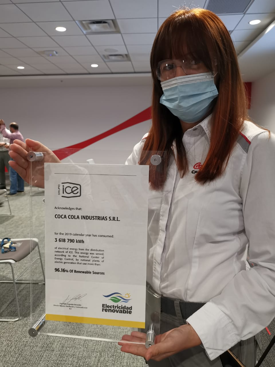 La planta de concentrados de Coca-Cola, fue reconocida por el Instituto Costarricense de Electricidad (ICE) con el Sello de Electricidad Renovable (SER), lo que garantiza que sus operaciones en Liberia, Guanacaste se realizan con energía proveniente mayoritariamente de fuentes limpias.