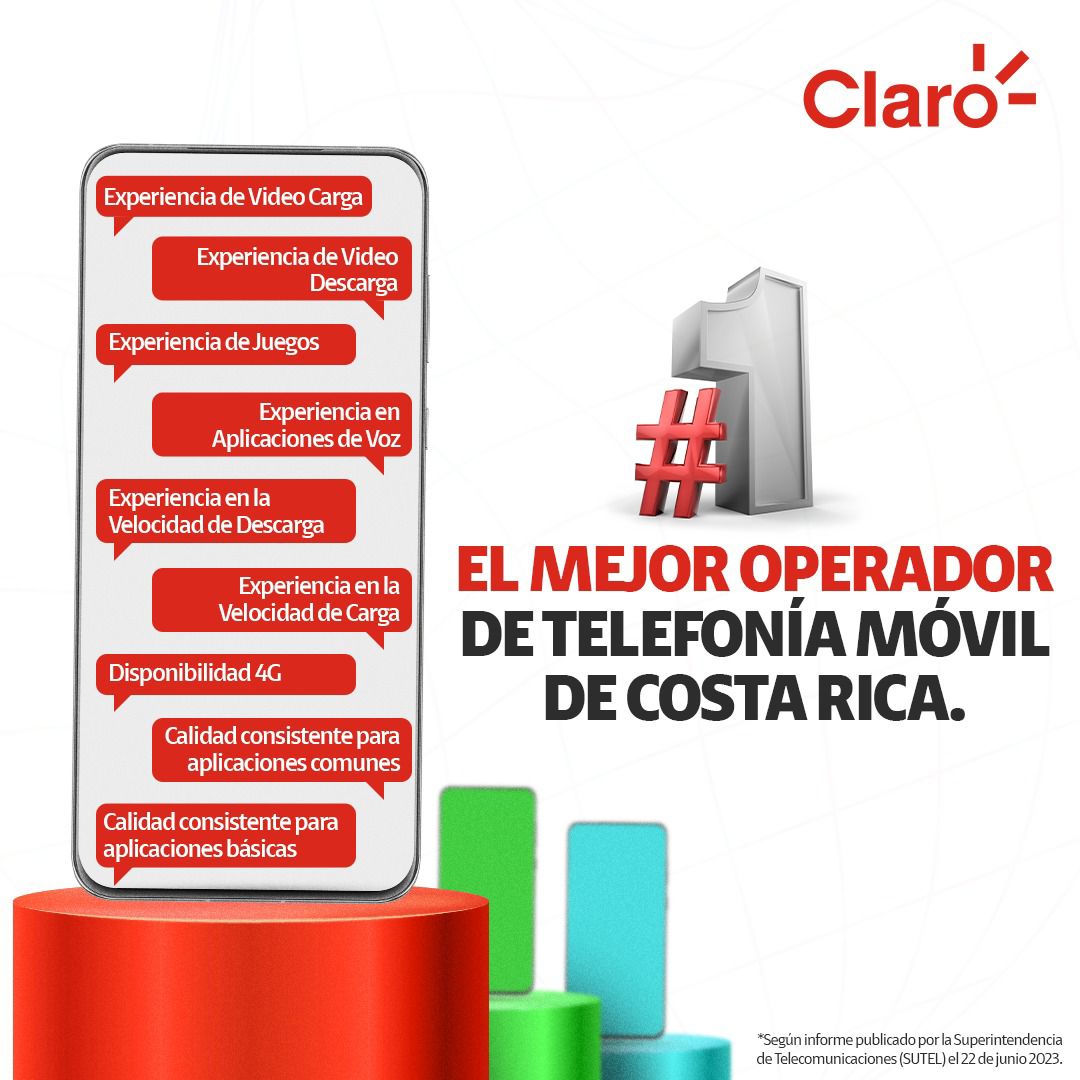 Claro Costa Rica se mantiene como líder en experiencia móvil al obtener la mejor calificación en 9 de los 10 parámetros que señala el reporte “Premios de la experiencia Móvil” que dio a conocer la Superintendencia de Telecomunicaciones (SUTEL).