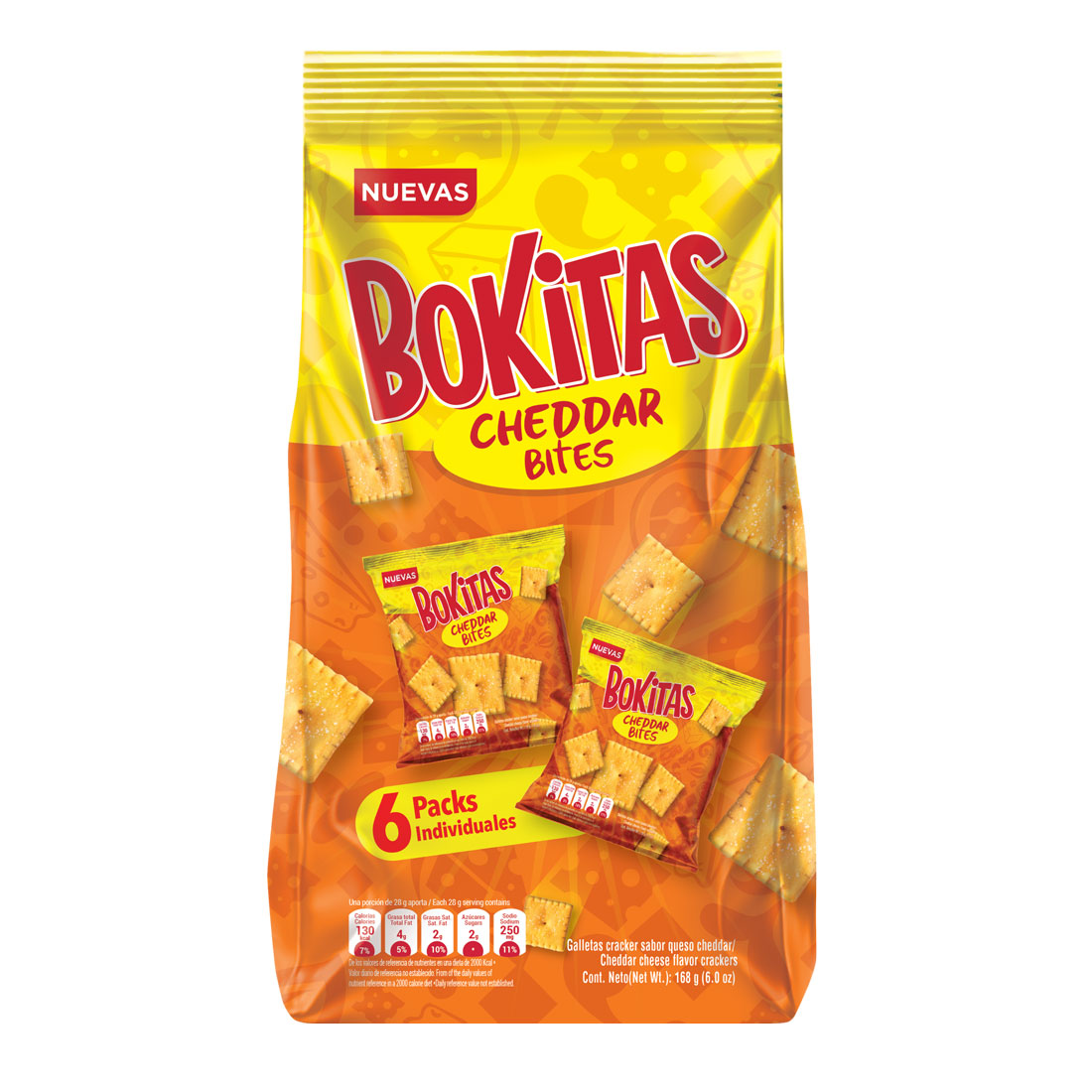 Quienes se inclinan por estos productos estarán más que felices con las nuevas Bokitas Cheddar Bites, unas mini galletas con irresistible sabor a queso cheddar, perfectas para “snackear” durante el refrigerio, noches de entretenimiento, idas al cine, paseos familiares o como picoteo en fiestas. Disponibles en presentación de bolsa con seis paquetitos de 28 gramos cada uno.