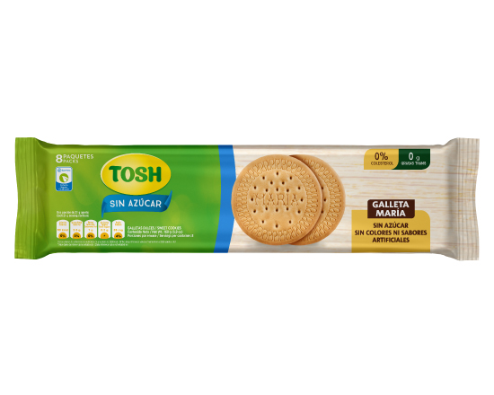 Pensando en los consumidores que son cada vez más conscientes de reducir el azúcar en su dieta para beneficiar su salud, Pozuelo ofrece un clásico muy apetecido por las familias: las nuevas galletas Tosh María sin azúcar, sin colesterol y sin grasas trans.