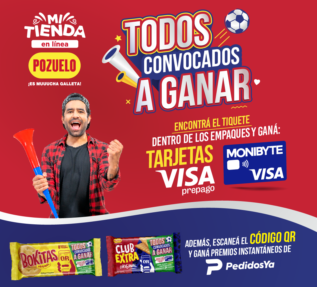 La mecánica de participación es muy sencilla, basta con comprar galletas Bokitas o Club Extra y dentro de los paquetes podría encontrar tiquetes válidos por tarjetas prepago Monibyte Visa cargadas con montos de US$100, US$500 y US$1000. También, los empaques tendrán códigos QR que, al activarlos, podrían optar por premios instantáneos de “PedidosYa” equivalentes a 10.000 colones. En total, la suerte se distribuirá en 50 tarjetas prepago Monibyte Visa, así como en 300 códigos QR premiados de “PedidosYa”.