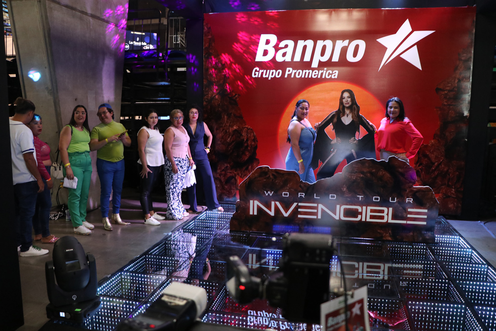 Banpro sí te Premia, decía uno de los anuncios que adornaban el Polideportivo Alexis Argüello, durante el concierto “World Tour Invencible” de Myriam Hernández, además Banpro instaló un stand para que los asistentes vivieran la experiencia y se llevan un lindo recuerdo del evento. El concierto de la artista chilena fue antecedido por Fuzion 4, una agrupación nacional que puso a bailar a los participantes al ritmo de palo de mayo, cumbia, merengue y otros.