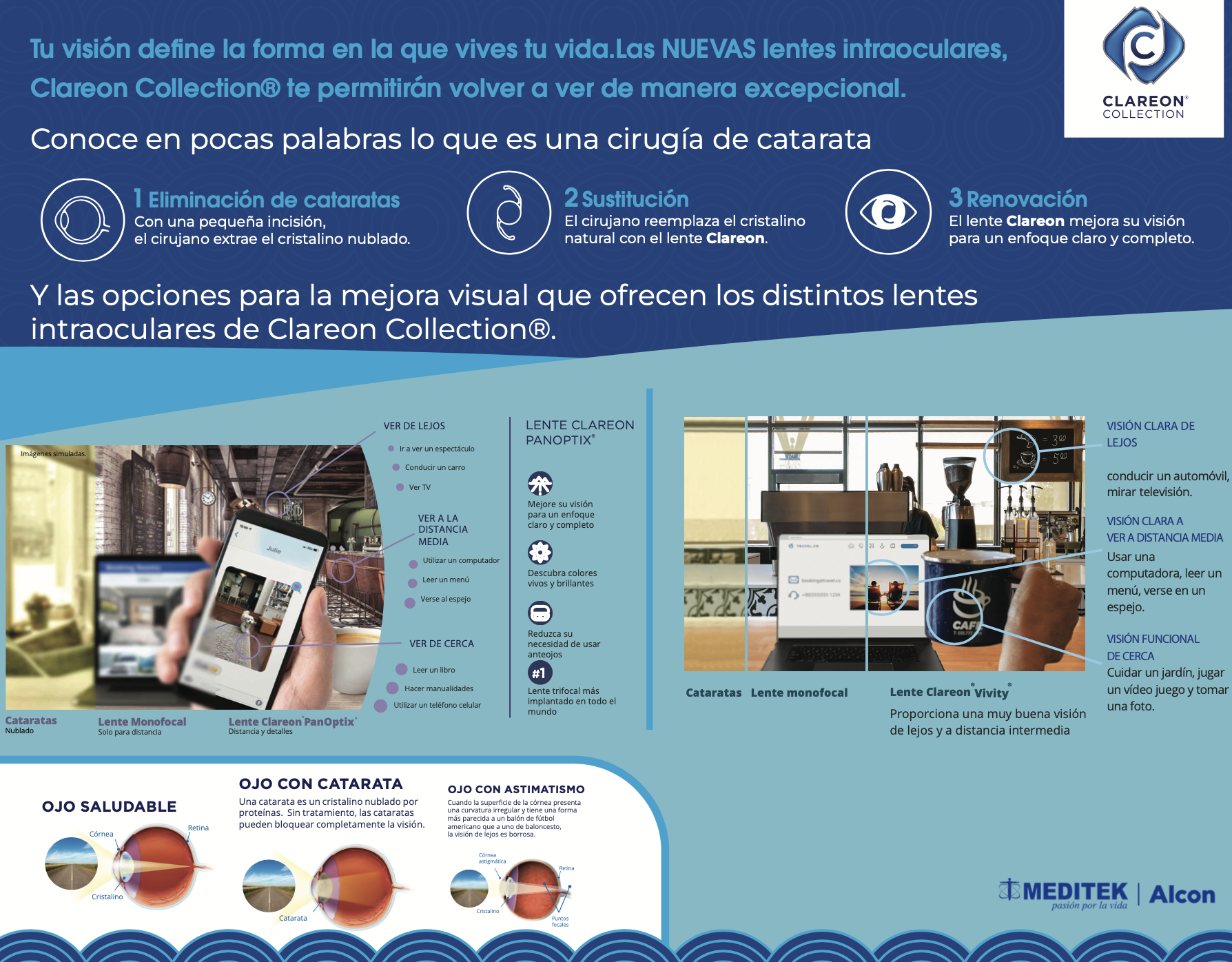 Más del 92% de las cirugías de cataratas se consideran exitosas y los pacientes generalmente pueden regresar a sus rutinas normales dentro de las 24 horas. “En Meditek, estamos orgullosos de ofrecerle a los cirujanos de catarata y sus pacientes, la última tecnología de lentes intraoculares en Costa Rica”, señaló Paula Venegas, Business Unit Manager Oftalmología.