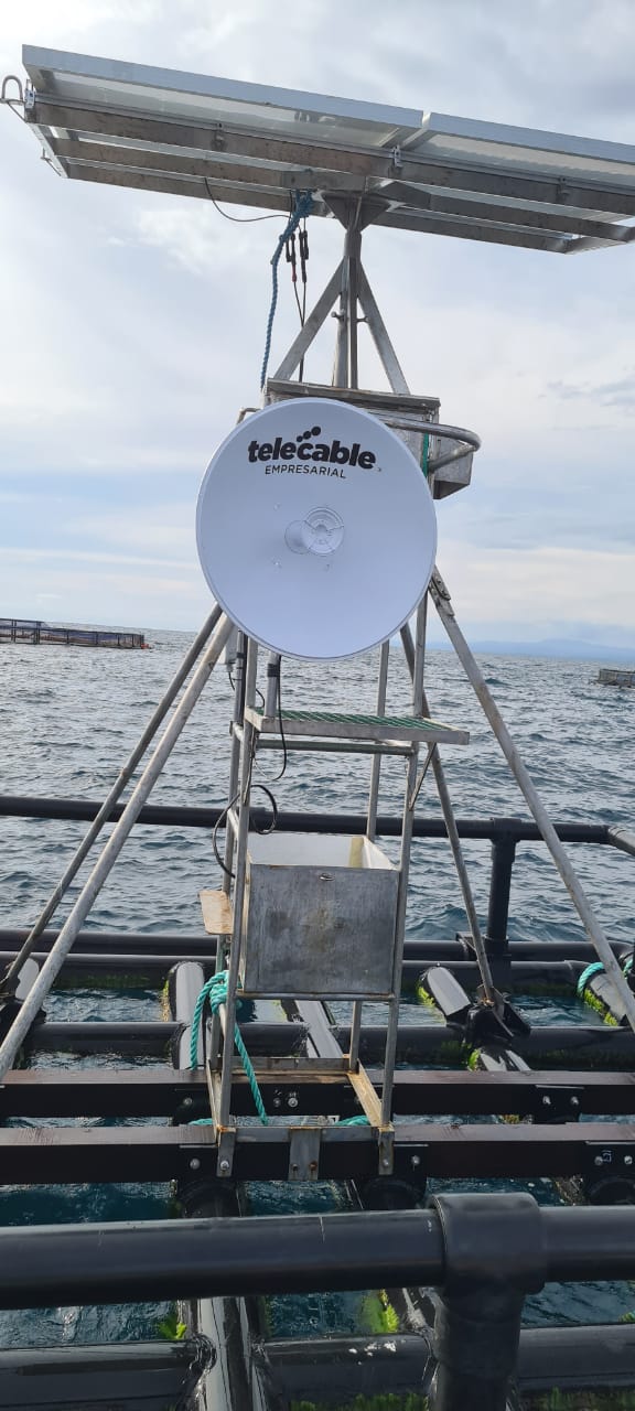 “El servicio fue instalado en una balsa, que se encuentra anclada y sujeta a jaulas en el mar. La base cuenta con paneles solares para la alimentación eléctrica tanto para los equipos de Internet como los equipos terminales de Telecable”, explicó Sánchez.