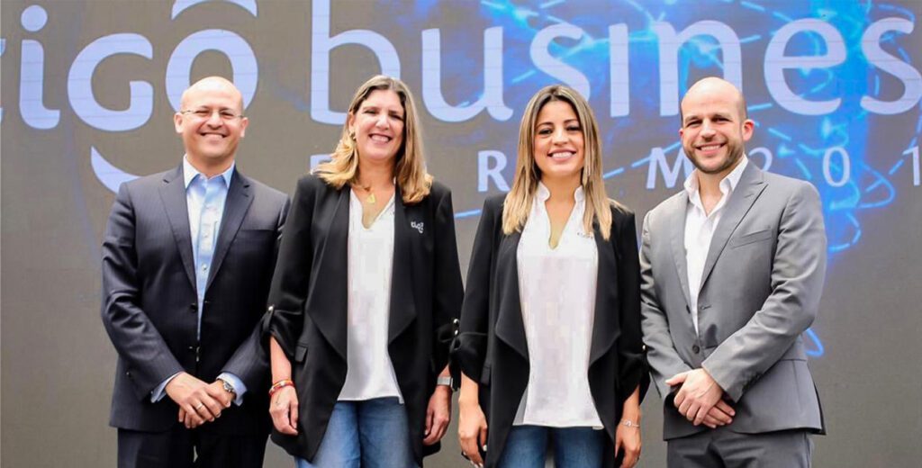 Francisco Mancilla, director de Tigo Business, María Ximena Rodríguez, Chief Experience Officer de Tigo, Jamie Moreno, directora de mercadeo de Tigo y Juan José de Dios, director comercial Tigo Business.