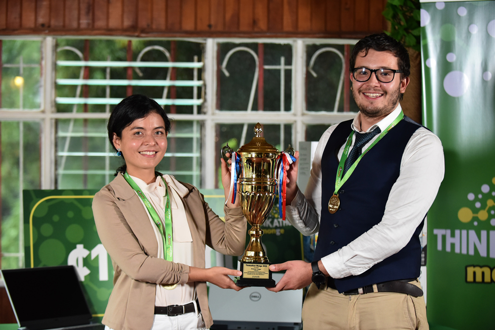 María Alejandra Merino Zapata y Ricardo Cascante Gómez provenientes del TEC fueron los ganadores del primer lugar, al proponer Sloth Finder, un sistema de captura de datos del oso perezoso a través de un dron con sensores térmicos, que puede tomar fotos hasta por encima de copas de los árboles, con las cuales pueden generarse estadísticas de la densidad poblacional de la especie y diferenciarla de otras.