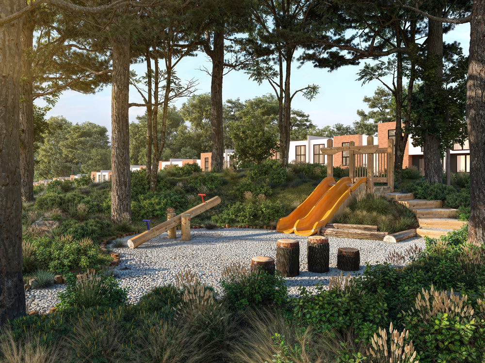 Con un parque ecológico de 2 manzanas como el pulmón verde, el proyecto invita a descubrir una nueva forma de vida donde cada día comienza con el canto de los pájaros y el suave susurro de las hojas en el viento. Desde juegos infantiles estilo campestre, un circuito para correr de 2 manzanas y un Pet Park hasta áreas sociales para eventos y un acogedor Fire Pit Area ideal para campamentos, la diversión y la relajación van de la mano.